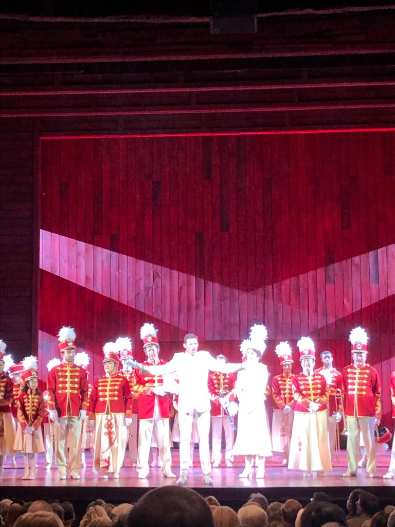Jackman is just the antidote we all need as we enter the third year of the COVID pandemic. Everyone should know the plot of the play by now; it’s been around since 1957 when it first premiered on Broadway. For those who have amnesia or who really don’t know the story, it’s a sentimental throwback to a vanished era, 1912 small-town life, as lived in River City, Iowa. The story follows the exploits of a “Professor” Harold Hill, a con man posing as a traveling salesman, who drops into town to sell the locals on the idea of a boys’ marching band – along with the necessary uniforms and instruments – even though he has no idea as to how to set this up. Hill meets his match, though, in Marian the librarian, an independent, sharp-tongued, spinsterish woman here played by Foster. She spurns Hill’s advances, seeing through his ruse. But when Hill eventually melts his opponent’s defenses, Hill gives up his swindling, vagabond ways to settle down with her and truly organize the boys into a real marching band. The play boasts such well-known musical numbers as “Seventy-Six Trombones,” “Ya Got Trouble,” “Good Night, My Someone,” and “Till There Was You,” and many others. Jackman displays his triple talents as singer, dancer, and actor in the play. Foster is just luminescent in her transformation from a skeptical, untrusting, chaste woman to one that just lets it all rip in Act II. Her singing is lilting in all its gloriousness. I particularly enjoyed the young actor who portrayed her lisping brother, Winthrop (Benjamin Pajak), who comes out of his reserve after the death of his father, to belt out “The Wells Fargo Wagon” with the townspeople before the end of Act I. Can you believe a young Ron Howard played the 11-year-old in the 1962 film version of this play, along with Robert Preston who originated the role?