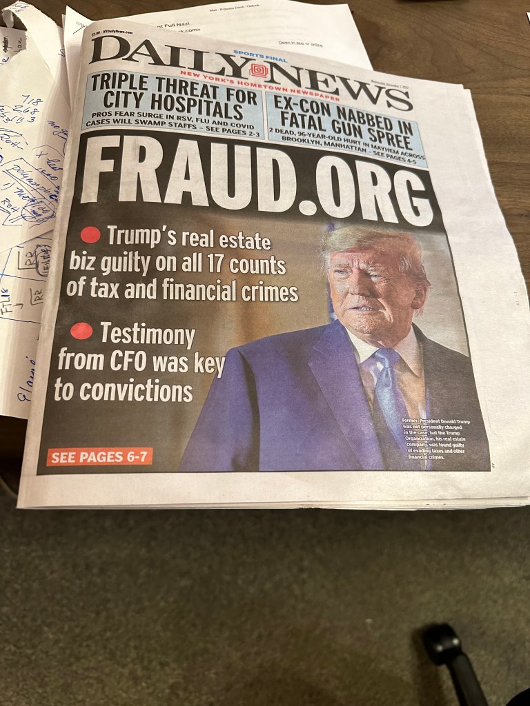 Here is today’s hilarious cover headline on the conviction of Dumpf’s two companies on all 17 counts of tax and financial crimes. I thought you might enjoy it.