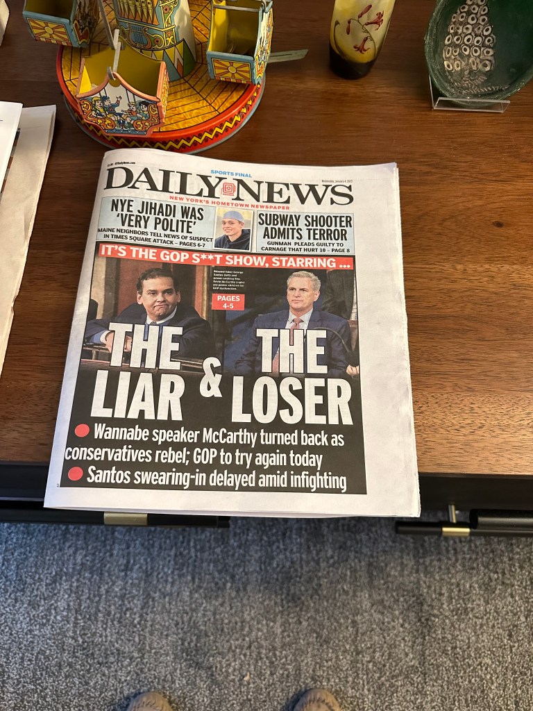 Since I was out for most of the day (this is Elliot’s first day in California), I missed the fireworks when repugnant Matt Gaetz had the audacity to nominate the primary insurrectionist to be House speaker on the 11th ballot. The fucking NFT king got only one vote – from the Florida nutcase, Gaetz – which drew laughter in the chamber. Boy, has this ex-president hit bottom right now with his own revolting party with this absurd move on the part of the Grinch known as Gaetz. If we ever needed proof of Dumpf’s dawning unpopularity, this is definitely it!