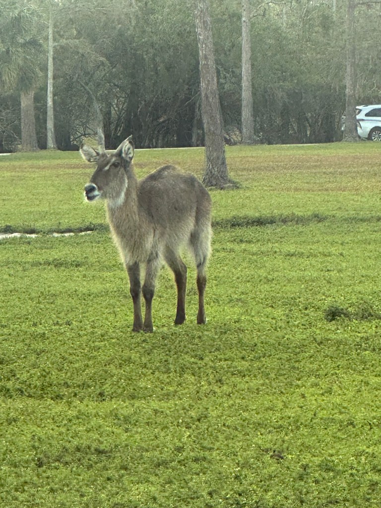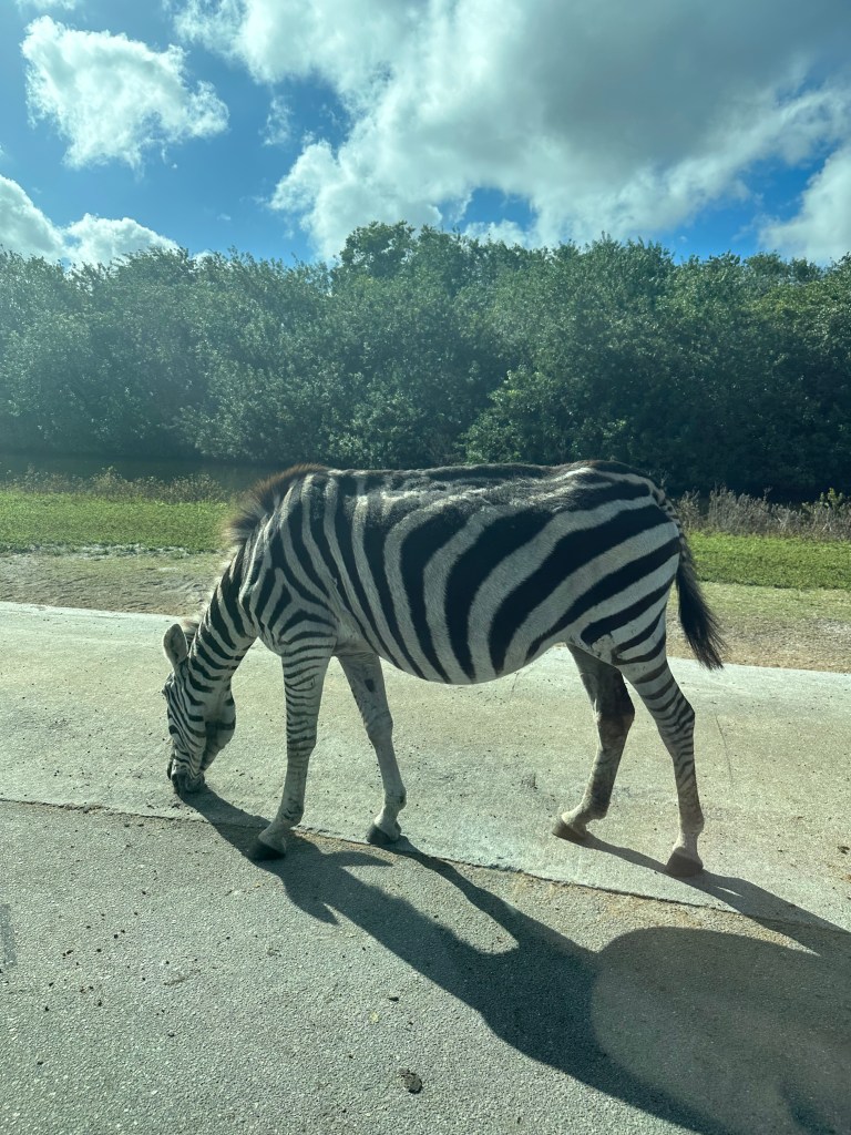 One of the other highlights of our trip was going to Lion Country Safari, located in Loxahatchee, Florida, located about 45 minutes away from Boynton Beach. That day, we woke up early to have breakfast in the clubhouse and drove to the safari park, arriving there about 9:50 a.m. This attraction is a drive-through safari park as well as a walk-through amusement park located on over 600 acres in Palm Beach County. It was founded in 1967 and claims to be the first “cageless zoo” in the United States. Here we paid the $45 admission fee and drove gingerly through. I was a little nervous about having an ostrich peck at our window, but that didn’t happen. It was baboons who have been known to jump on and scratch cars, pull at antennas, or remove windshield wipers. The lions that you see are found behind a fence now; they used to roam freely, but not anymore. I wonder why! We didn’t see these animals or had any other animals stop in front of the car. We did see a certain kind of antelope cross the street on its oblivious way to the other side. From the drive-through part of the attraction, we then parked the car and took the walk-through which consisted of seeing more animals in their natural habitats like tortoises, macaws, and various types of snakes. We also watched a “critters show” at around 12:30.