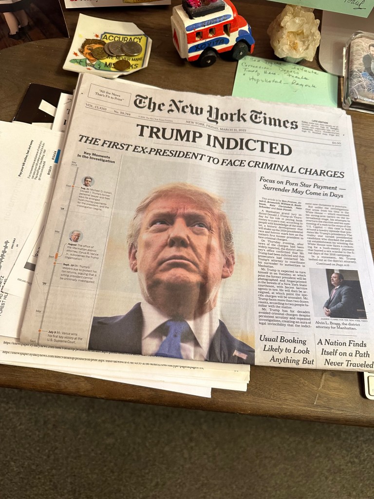 Today is Friday, March 31, 2023. It’s a day after the unthinkable happened: a former president was indicted for the very first time by a New York grand jury for multiple charges of falsifying business records, including at least one felony charge, in the indictment handed down by the Manhattan grand jury. Details of the ongoing criminal investigation are revealed in an online article by the Associated Press in which the revelation that Dumpf will be facing at least one felony charge appears in the opening paragraph by Michael R. Sisal, Colleen Long, and Will Weissert entitled “AP sources: Trump facing at least 1 felony charge in NY.”