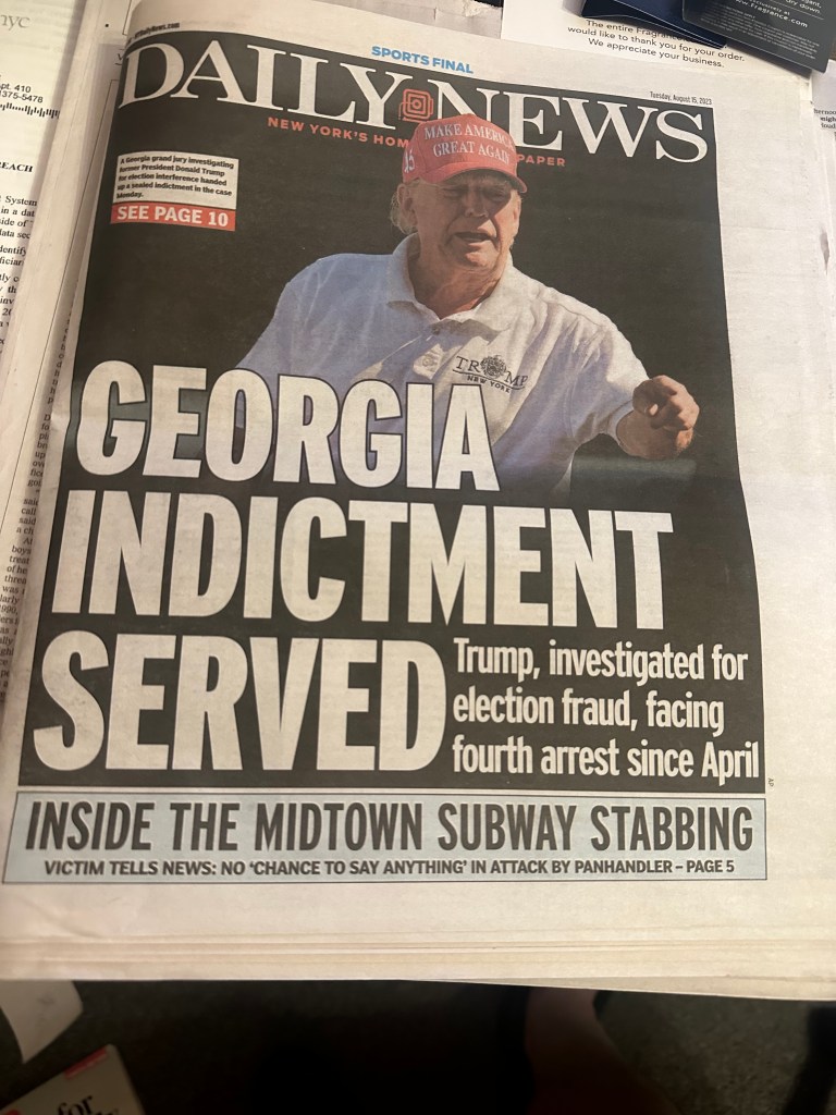 Oh, by the way, I did buy both the Daily News and The New York Times, even though the articles didn’t have all of the details behind the 41-count indictment. That will be in tomorrow morning’s editions.
