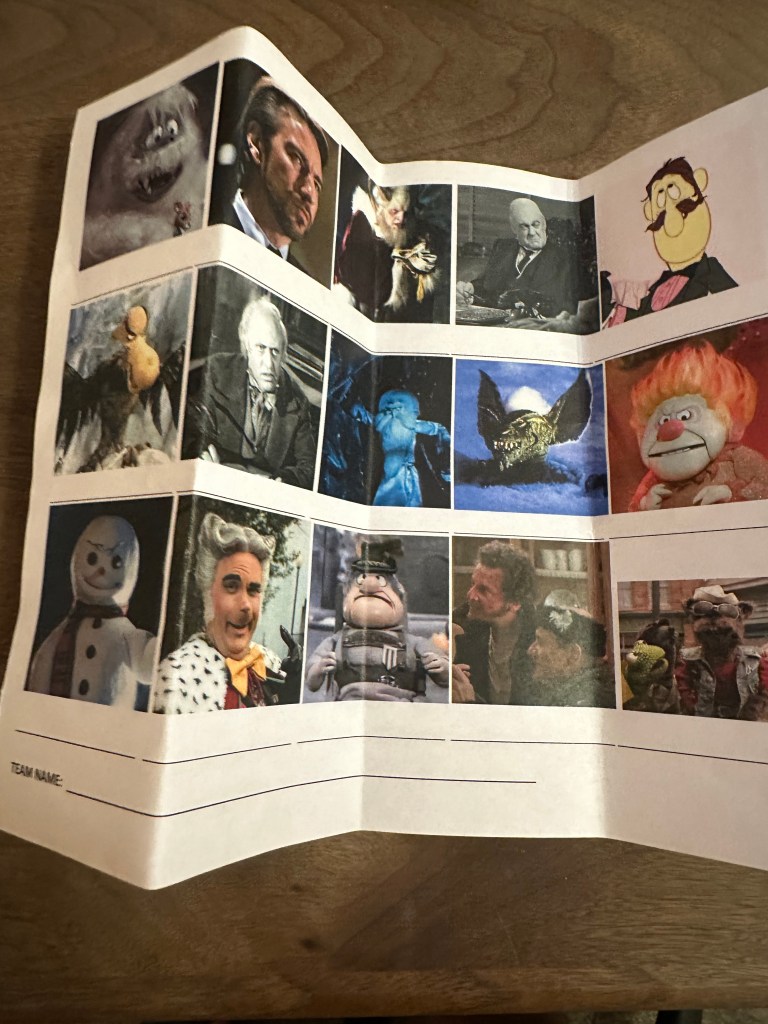 The theme of last night’s competition was “everything Christmas.” So as my wont, I researched the topic and took notes on anything pertaining to Christmas before coming out to the Island. There was so much information on the holiday that I had no idea if I had succeeded in covering everything one needs to know about it: things like which movies have a Christmas theme, songs and songwriters, plus who sang these songs, facts about the holiday, and so on. I can tell you that the actual contest contained more questions that were geared to a younger audience. And if it weren’t for our younger teammates, Jake and I would have bombed the competition. We both felt the questions covered more recent movies and general Christmas knowledge. There were three sections, two sections having 12 questions each, and one visual section where you had to identify 15 Christmas villains. Some of the characters appeared in animated films, of which I’ve seen nary a one. I was able to identify three of the villains. That’s it! For fun, I thought I’d show you the visual segment of the contest; see how many faces you can identify.