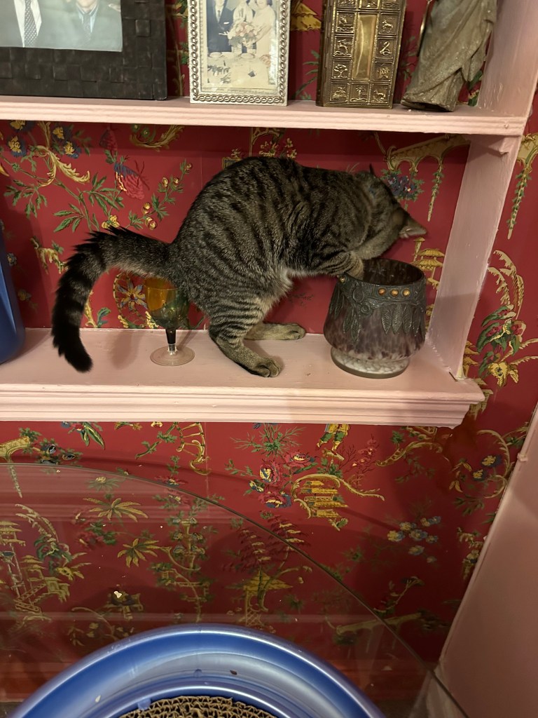Today is Friday, January 12, 2024. Sometime after 6 p.m., Elliot and I sang “Happy birthday” to Atticus who marked a week with us. It’s remarkable that a week has passed this quickly, but it has. As of now, he’s restricted from the bedroom since we’re not sure what damage he might do there. I’m watching him right now to ensure he doesn’t misbehave. At this very moment, he has found a ceramic vase on our built-in alcove bookshelf where he’s very adeptly taken out candies or other goodies with which to swat with his paws. I think this is extraordinary in a cat. He put his entire snout in the vase and grabbed the candies with his right paw.
