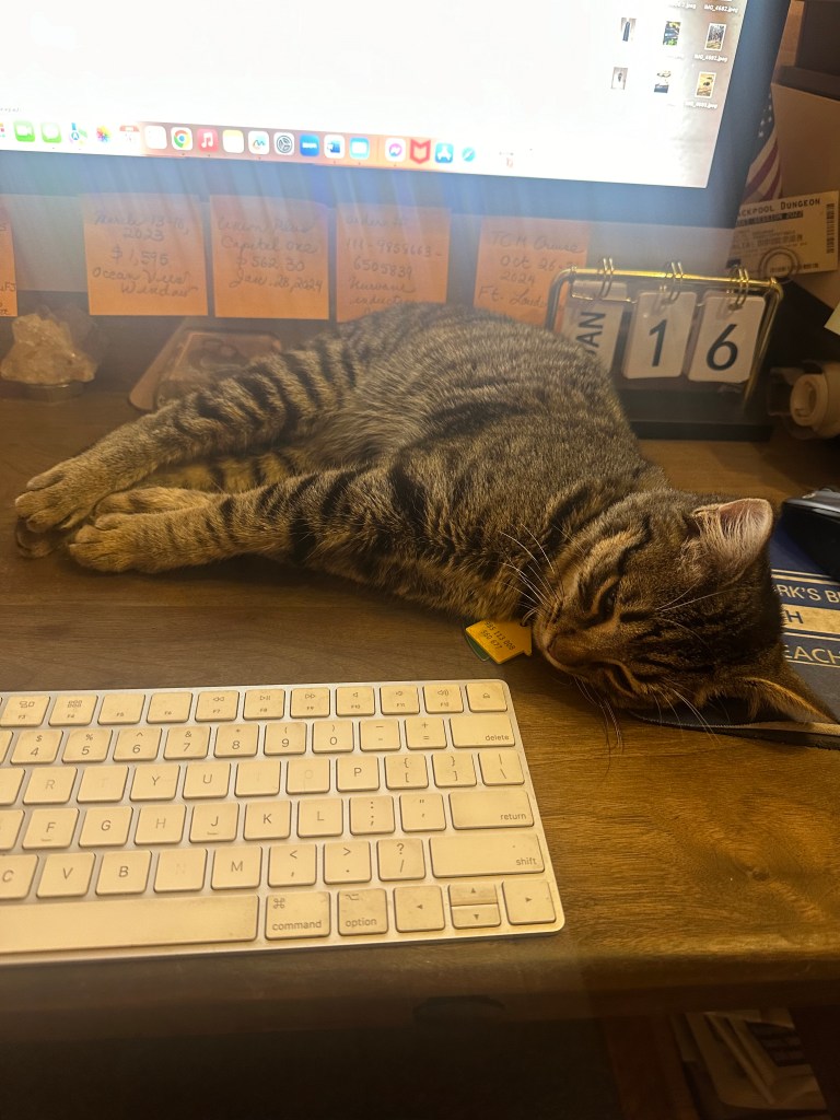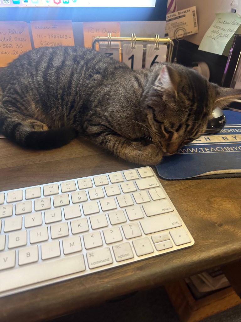 So that’s the top news stories so far. I have to report that I was typing the blog with Atticus sleeping next to the keyboard and the computer monitor. He’s that small that he fits in between both items on the desk. What was so amusing about him sleeping here was his paw falling on the keyboard and accidentally touching certain keys which I had to delete, so if there are some errors in this blog, you’ll know why.