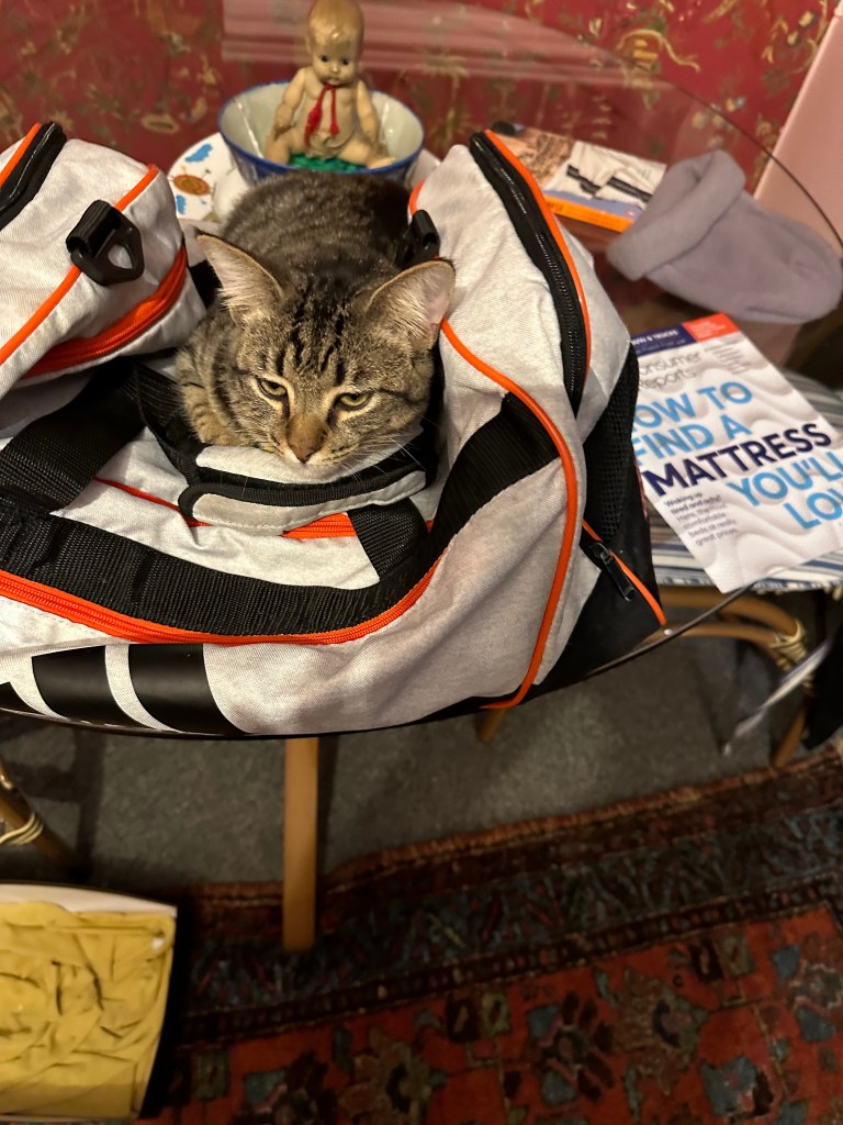 When we got home, the 32″ cat sisal scratching post was waiting for us downstairs on the lobby table so I brought it upstairs and allowed Diane who was invited back to see Atticus to assemble the item with the tools enclosed. We would have attempted to put it together tomorrow, but Diane insisted on doing it tonight, so we helped her with the task. Now Atticus is enjoying it enormously.