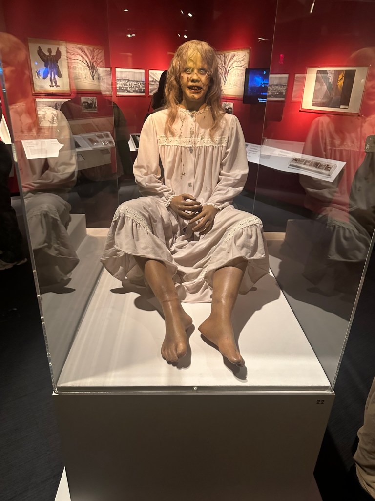 The only other new exhibit is called “Horrible Sites: Makeup and Production Design for The Exorcist” which needs no introduction – unless you haven’t seen this groundbreaking horror film released in 1973. Even to this day, I still recall the hysteria that was created with the release of this story of demonic possession. Patrons supposedly fainted or threw up in their seats while watching this film. So this exhibit explores the film’s production and makeup design, detailing how a stylish townhouse in Georgetown, Washington, D.C., and an innocent young girl were transformed into sites of horror. There are storyboards from the film on view in this exhibit and other artifacts, including a life-size mannequin of the actress Linda Blair as her character Regan MacNeil in the terrifying film. Looking her up, I’m floored to see that she’s now 65 years old. To me, that’s scary!