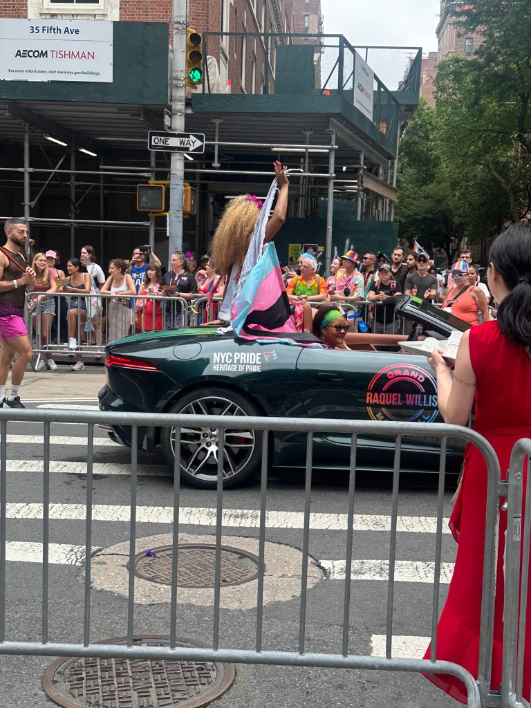 Here is one of the Grand Marshals, Raquel Willis. I didn’t know who she was, so I looked her up: She is an African American writer, editor, and transgender rights activist. She was born in 1990 or 1991, in Augusta, Georgia. Too bad you don’t see her face in this pic.