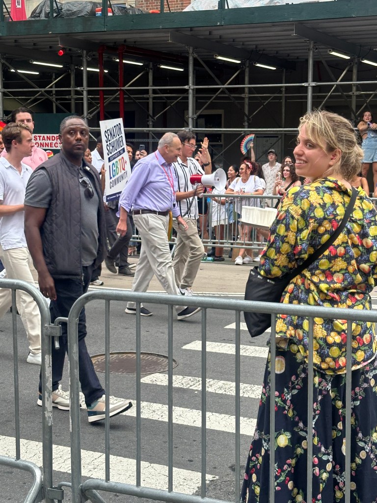 Here is Senator Schumer, who always proclaims that he was an early proponent of marriage equality in the state after his own daughter came out and married her significant other. Unfortunately, that’s the extent of my Pride March pictures, since it was after this time that I was pressed into service to hand out liquid refreshment to the marchers.