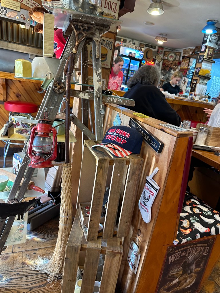 The next day we spent more time in Hobart going to the various bookstores we missed on Friday. But we had a more substantial breakfast at a local eatery called the Coffee Pot that oozed local charm like a baseball cap that announced “God, guns, and Trump” on a table. Yep, this little village was squarely in Dump’s backyard, as we came across so many “Trump-Vance” signs along the way. It was very hard to find signs of the opposition party gracing house lawns anywhere.
