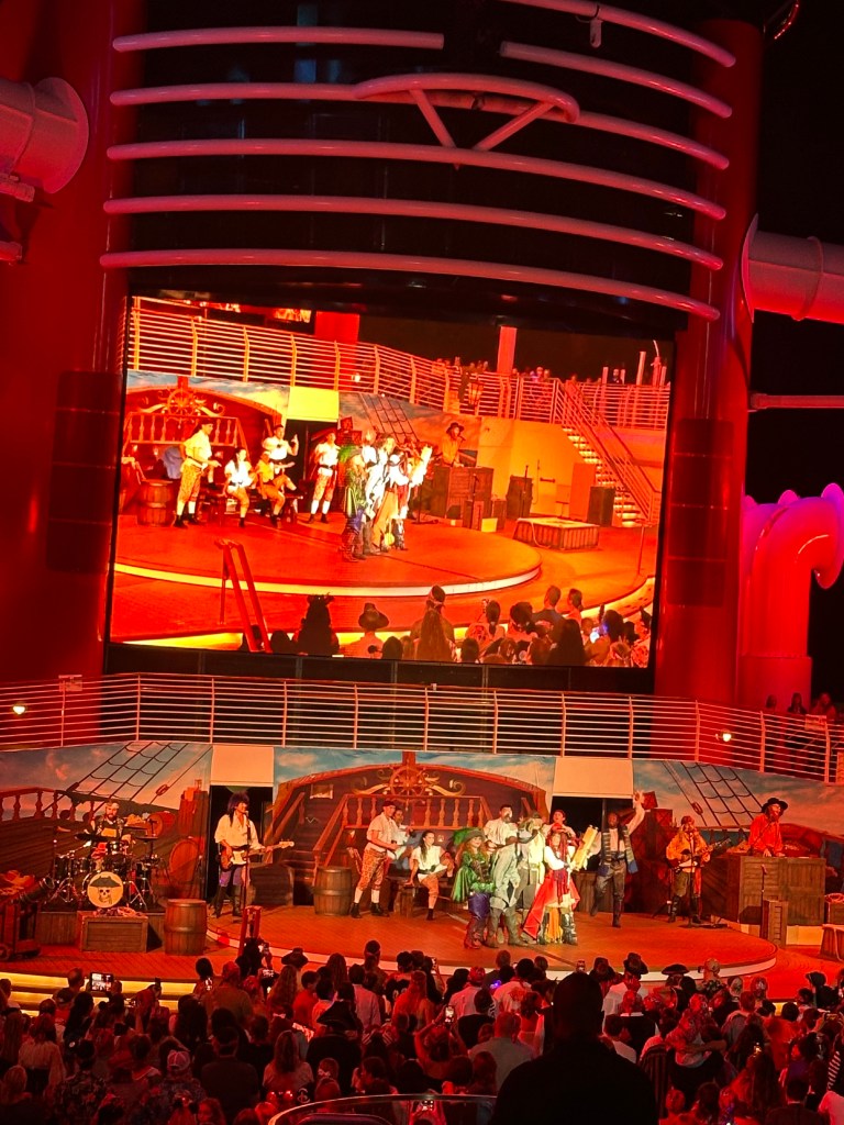 Today is Wednesday, July 30, 2025. We have returned from our three-day Disney cruise to the Bahamas to celebrate my son’s 40th – Egad! – birthday on July 28, the day we docked back in Cape Canaveral, Florida. I have to say that my son was overall pleased with the Disney extravaganza, even having no children of his own. As I mentioned in earlier blogs, the reason we took this type of sailing experience was that his good friends have two small children, one being 7 months old and the oldest being about 3 and a half years old. Otherwise, you wouldn’t find me on such a ship going to the Bahamas in late July. Generally, I find the ports rather lackluster and the heat is always a problem. This cruise made two stops: Nassau, the Bahamas, and Castaway Cay, Disney’s own island. I stayed onboard for the first stop and got off briefly for Castaway Cay to go to some beach there and lounge just about a half hour before starting back to the ship. On the island, passengers were treated to a sizzling barbecue, but I eschewed that culinary experience because of the heat and just hightailed it back.