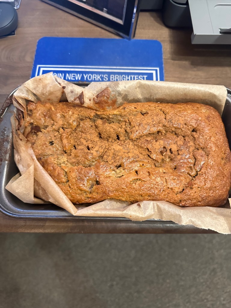 Today is Monday, December 8, 2025. We’re back from our sojourn to New England this weekend, visiting with friends “Laura” and “Richard.” I would say we had a very lovely and yummy time with Elliot’s Amherst friends. Laura prepared a very delicious dinner for us and one other couple on Saturday evening consisting of lamb shanks and mashed potatoes and a great dessert she baked herself like a blueberry galette. We also brought up our own banana bread that we baked on Friday. She made breakfast for us on both Sunday and Monday morning. On Sunday, she prepared pancakes with blueberries, and on Monday, she made a great spinach and bacon quiche.